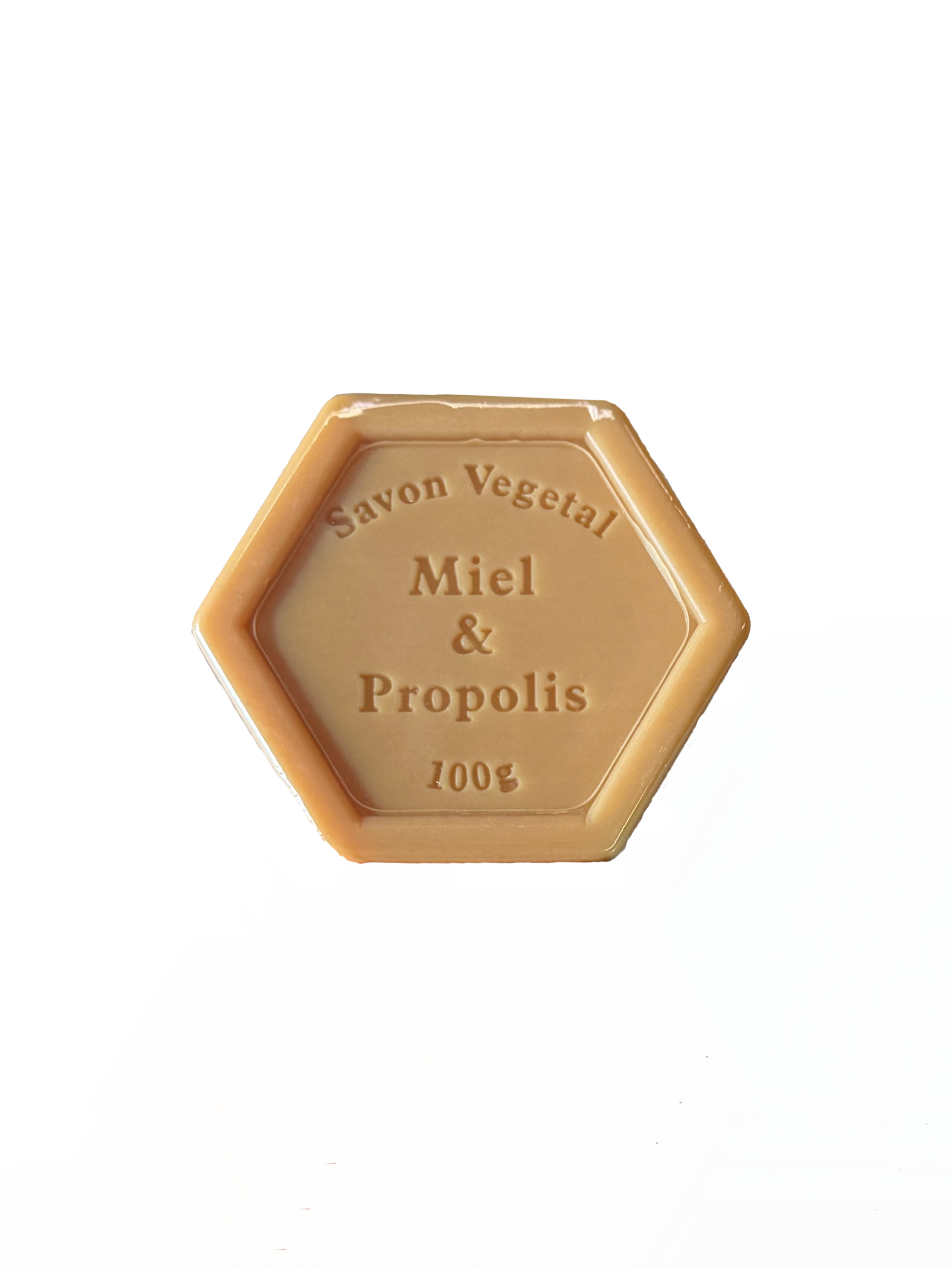 Honingzeep met propolis en een frisse verbena-geur, geschikt voor dagelijkse reiniging van handen en lichaam.